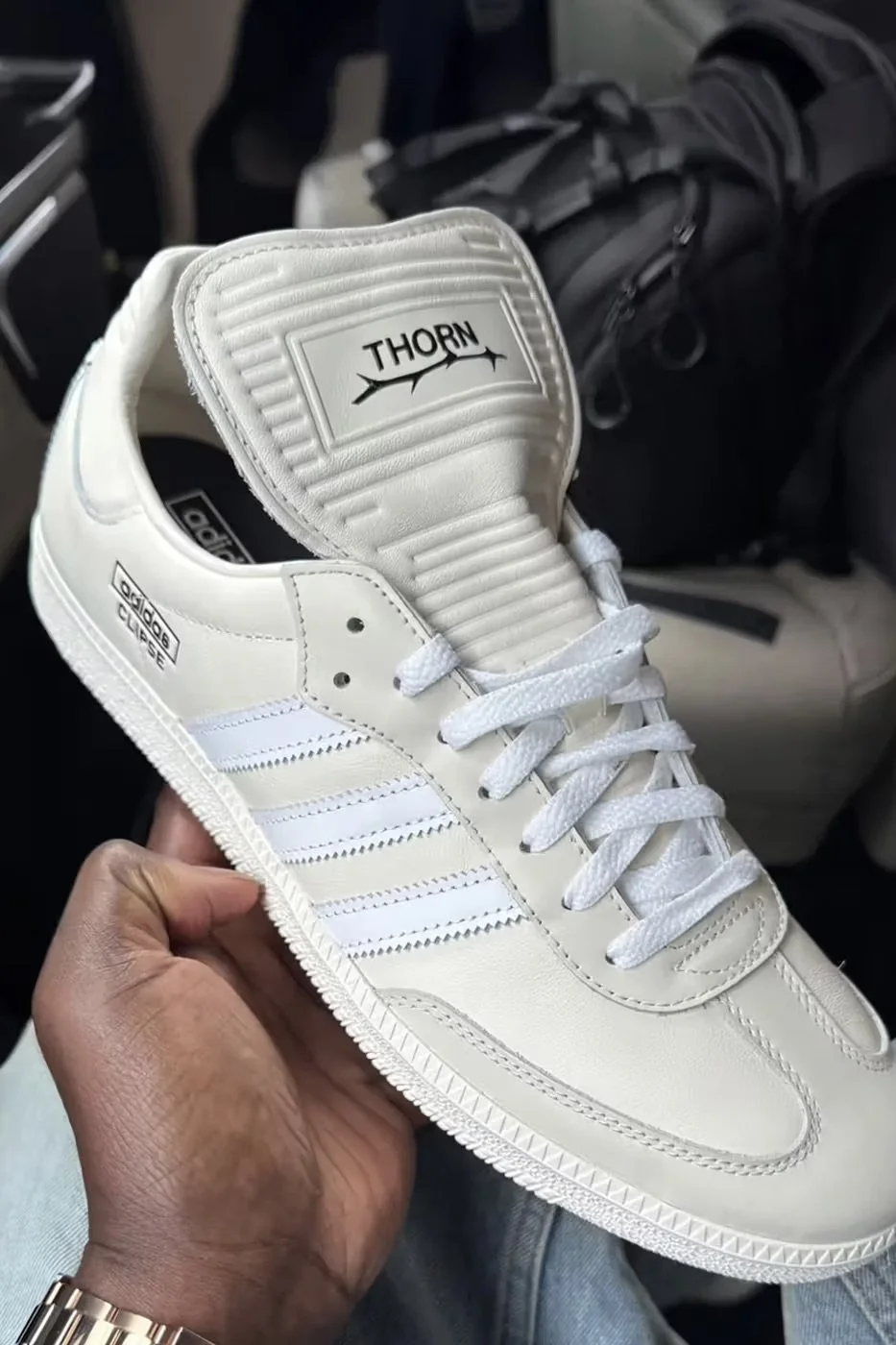 This Clipse x adidas Samba LT blends minimalist color blocking with personal flourishes—from the Thorn label to the discreet branding. It feels like a refined sneaker with meaning—a nod to both their comeback album and their legacy. Expect mad hype when it finally arrives.